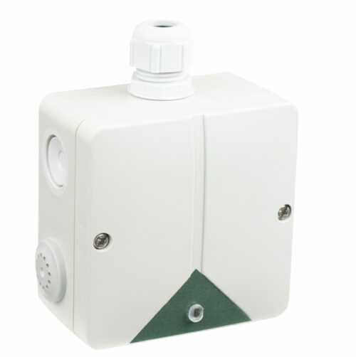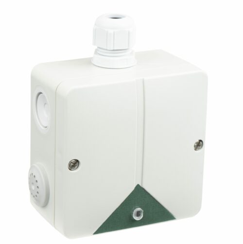 Konvencionalni crveni vanjski ručni javljač požara, sa kutijom za nazidnu montažu i prostorom za ulaz cevi. Opremljen LED indikatorom statusa i ključem za resetiranje. Pogodan za vanjsku montažu, IP 66. Dimenzije 120 mm x 120 mm x 87 mm. Certificiran prema CPR EN54-11.