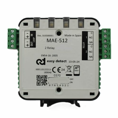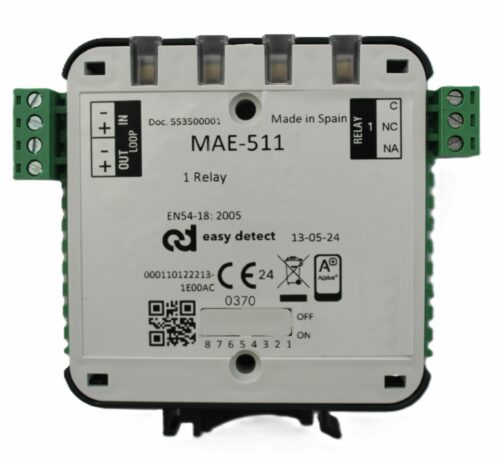 Adresabilni modul s 1 relejnim izlazom koji ima izvode od 5A sa C, NO, NC kontaktima. Direktno napajanje iz petlje i zauzima jednu adresu. Mala kutija s LED indikatorom statusa sa strane i prednje strane. Pojedinačno uklonjivi priključni terminalni. Instalacija na DIN šinu ili na ravnu površinu. Omogućava instalaciju bez polariteta. Crna i bela boja. Dimenzije 92 x 105 x 22 mm.