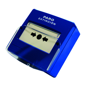 Konvencionalni ručni javljač za odlaganje gašenja požara, plave boje. Ima LED indikator statusa, alat za testiranje i ključ za deaktiviranje. Pogodno za unutrašnju instalaciju IP 33. Dimenzije 98 x 98 x 48 mm.