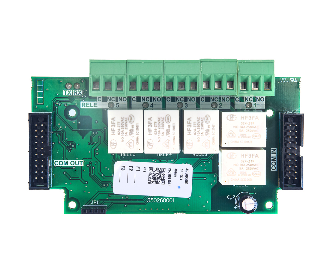 Kartica za proširenje sa 5 beznaponskih relejnih izlaza za konvencionalne centrale serije CCE-200, CCE-200 PLUS i CCE-203. Omogućava dodjeljivanje relejnog izlaza zoni ili programabilnim aktiviranjima.