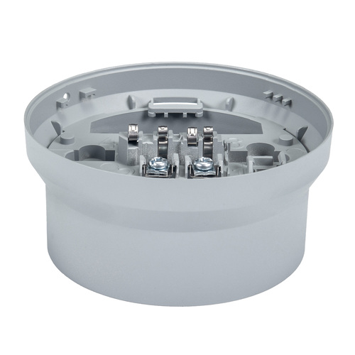 Visokoprofilno priključno podnožje sa 4 pripremljena ulaza za cijevi za seriju 100 konvencionalnih i adresabilnih detektora. Kontakti od nehrđajućeg čelika. Bela ili crna boja. Dimenzije: 104 x 49 mm